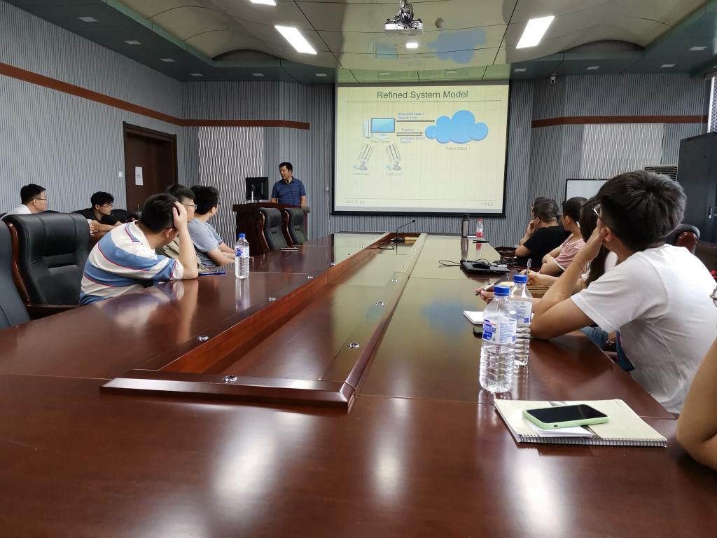 在本次报告中,Alex X. Liu教授针对云计算中的隐私保护问题,介绍了他在高速查询处理过程中保持强隐私保护的工作。他的研究工作可在范围查询和关键词查询时达到可信安全和计算开销的双重目标,在安全目标上使用最强的自适应安全模型,在性能目标上可达到百万记录上的毫秒级查询。在报告最后阶段,Alex X. Liu教授悉心的回答到场师生的问题。本次报告受到了广大师生的热烈响应。