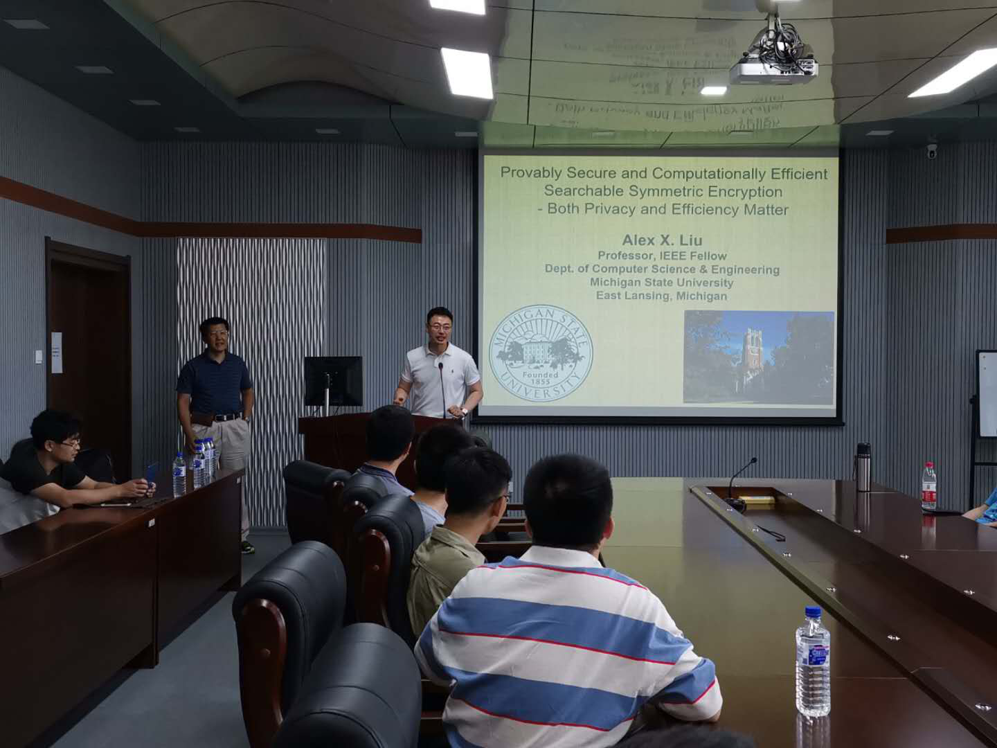 邀请,美国密歇根州立大学计算机科学与工程系Alex X. Liu教授,在计算机楼A515作了题为“Provably Secure and Computationally Efficient Searchable Symmetric Encryption”的学术报告。