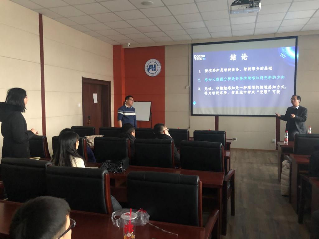 张大庆教授从情境感知的过去、现在和未来三个方面介绍了他本人以及所带领的科研团队在过去的十余年间在相关方面做出的科研成果,并对未来在情境感知领域的研究方向进行了介绍。首先,张大庆教授用生活中的实例,为大家介绍了生活中大家所能够接触到的关于感知方面的应用。之后,引出了在生活中,应用感知领域的知识结合现实生活,可以为人们的生活和科学研究带来哪些改变。之后,张大庆教授详细介绍了有关菲涅尔区模型和应用这个模型所能够实现的相关技术,解释了目前多数基于WiFi的识别工作效果不够稳定的原因。张大庆教授接着通过一段视频影像,更加形象生动的为大家介绍了其所做出的科研成果能够在生活中实现的应用。在报告的最后阶段,张大庆教授悉心的解答了到场同学所提出的相关问题,给大家之后的研究提供了新颖的思路。本次报告受到了广大老师和同学们的热烈响应。