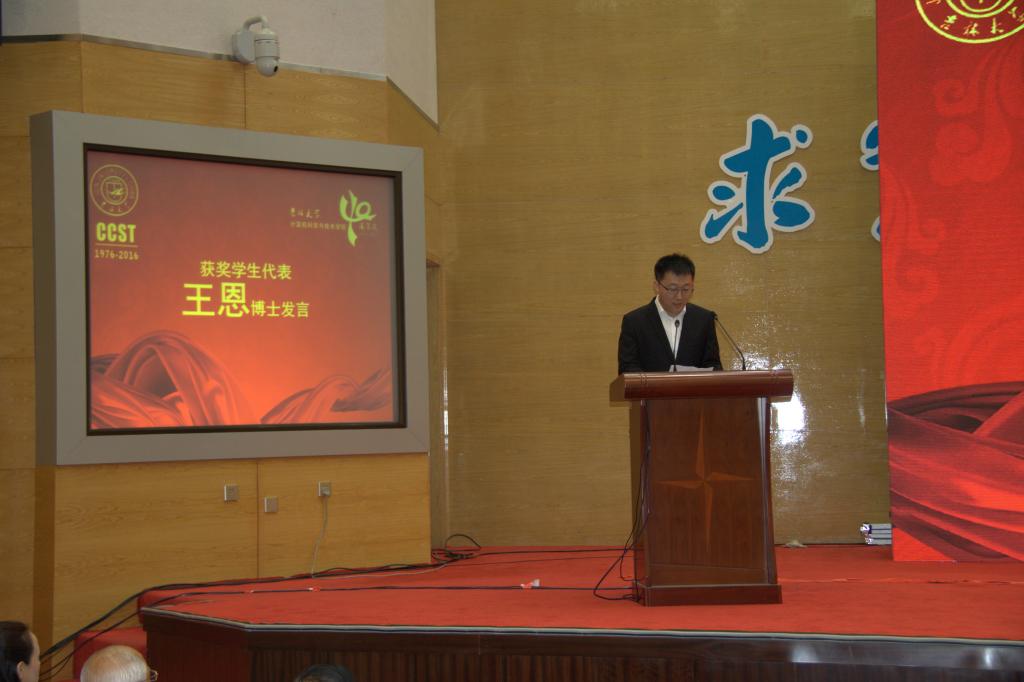 王湘浩奖学金管理委员会致辞。他介绍了王湘浩院士在科学上的杰出成就,在教育事业上建立的卓越功勋,以及王湘浩奖学金的由来发展,并感谢社会同仁和广大校友的无私奉献和大力支持。接着,刘大有教授宣读了2016年王湘浩奖学金获奖名单,希望获奖学生能够珍视荣誉,戒骄戒躁,锐意进取,争取更大的成绩。