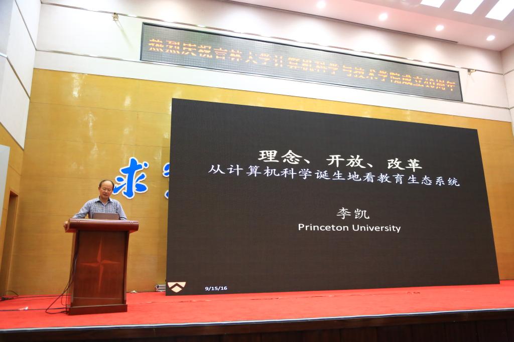校友、普林斯顿大学教授李凯教授作了名为“理念、开放、改革————从计算机科学诞生地看教育生态系统”的报告。他在报告中介绍了王湘浩先生在普林斯顿大学接受教育后,回国在数学及计算机领域做出的巨大的贡献。又系统的介绍了普林斯顿大学的历史、环境和发展等方面。李凯教授指出,普林斯顿大学有两个原则,一是选人只基于他们的能力,不考虑其他因素;二是让好奇心驱动知识追求,不看近期用途或达到预先确定的目标。他进一步指出我们不可能完全复制普林斯顿大学的制度,但我们可以像普林斯顿大学一样发展自己的特色教育,使我们17吃瓜网