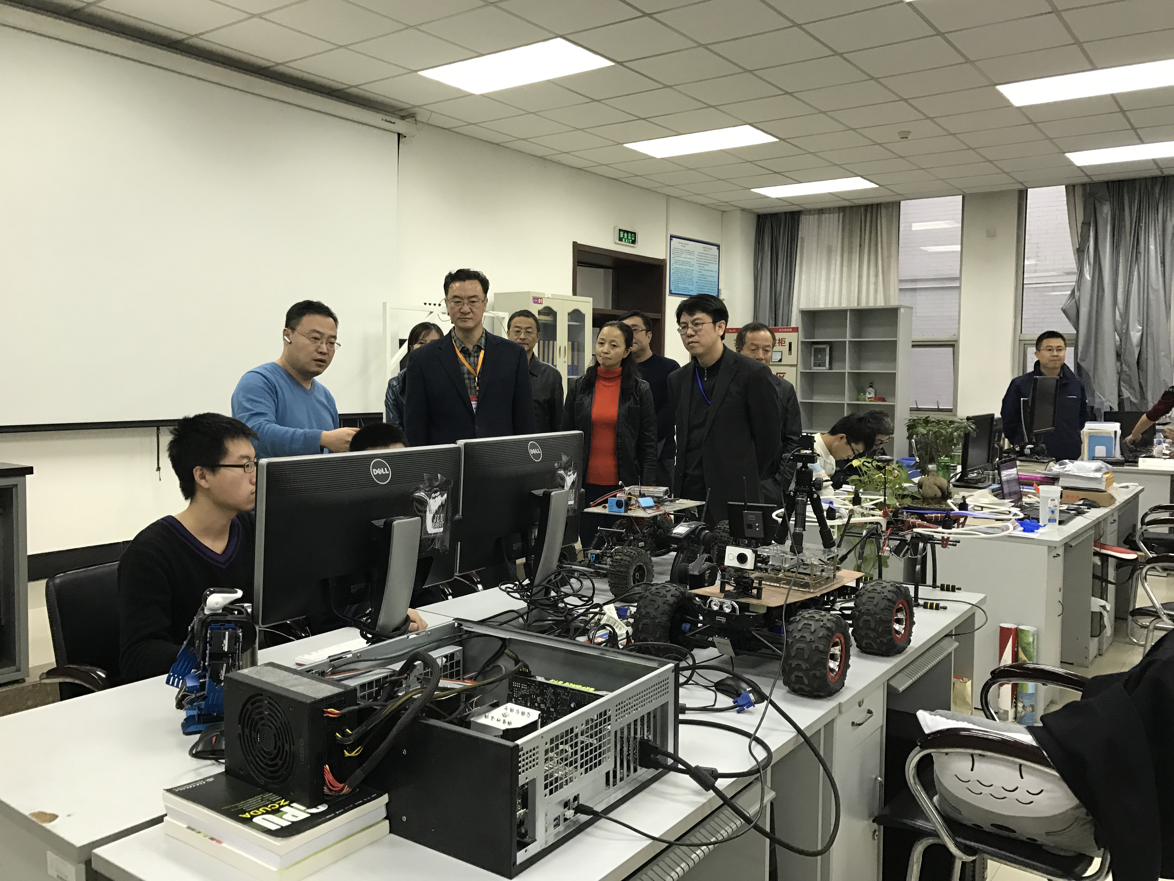 物联网实验室和开放实验室,与正在进行实验的老师和同学们进行了亲切的交流。