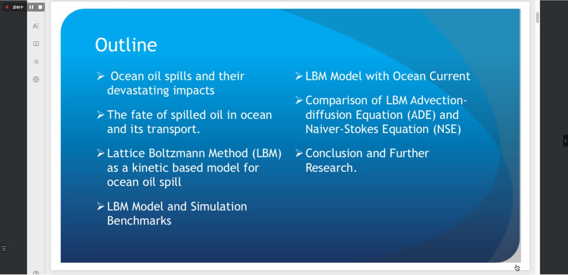 师生做了题为“Using Lattice Boltzmann Method for Ocean Oil Spill Model and Simulation”的线上学术讲座。