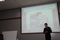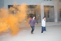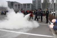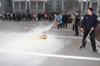 讲座结束后,两院师生在保卫处的协助下进行了一次联合逃生演习。火灾警报响起后,两院迅速启动“防火疏散预案”,各部门的负责人引导学生快速有序地撤出大楼。大家都按照讲座中的要领,弯着腰、用湿毛巾捂住口鼻逃生。疏散完毕到达大楼东侧停车场后,保卫处的同志又向参加演练的师生详细介绍了干粉式灭火器的使用方法,并利用模拟油槽起火,现场让师生操作、掌握防火器材的使用。