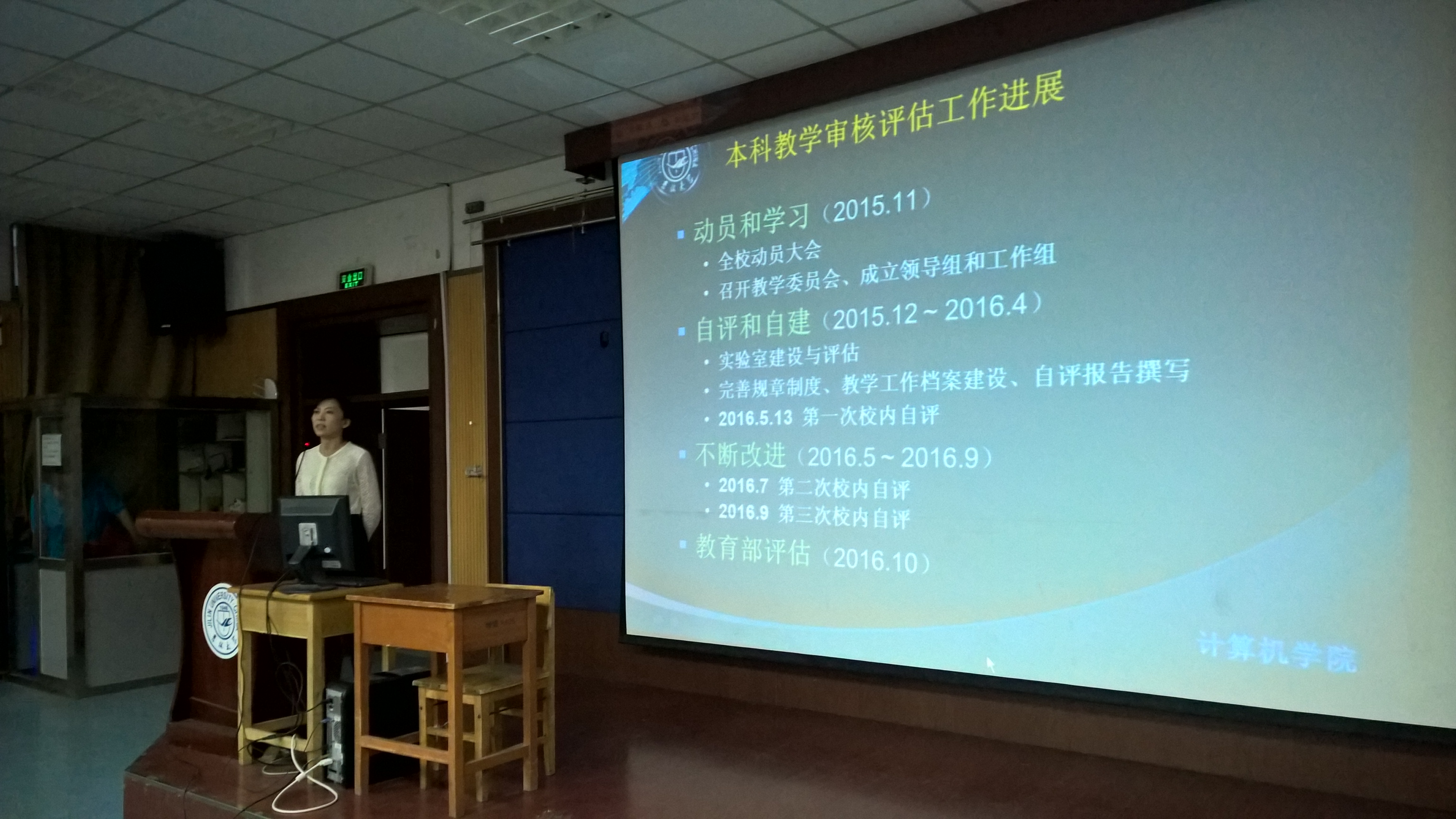 黄岚教授首先介绍了本科教学审核评估工作的进展,评估工作已完成了动员和学习、自评和自建两阶段工作,之后还将进行两轮校内自评并将于10月接受教育部的评估。在之前的校内自评中,计算机17吃瓜网