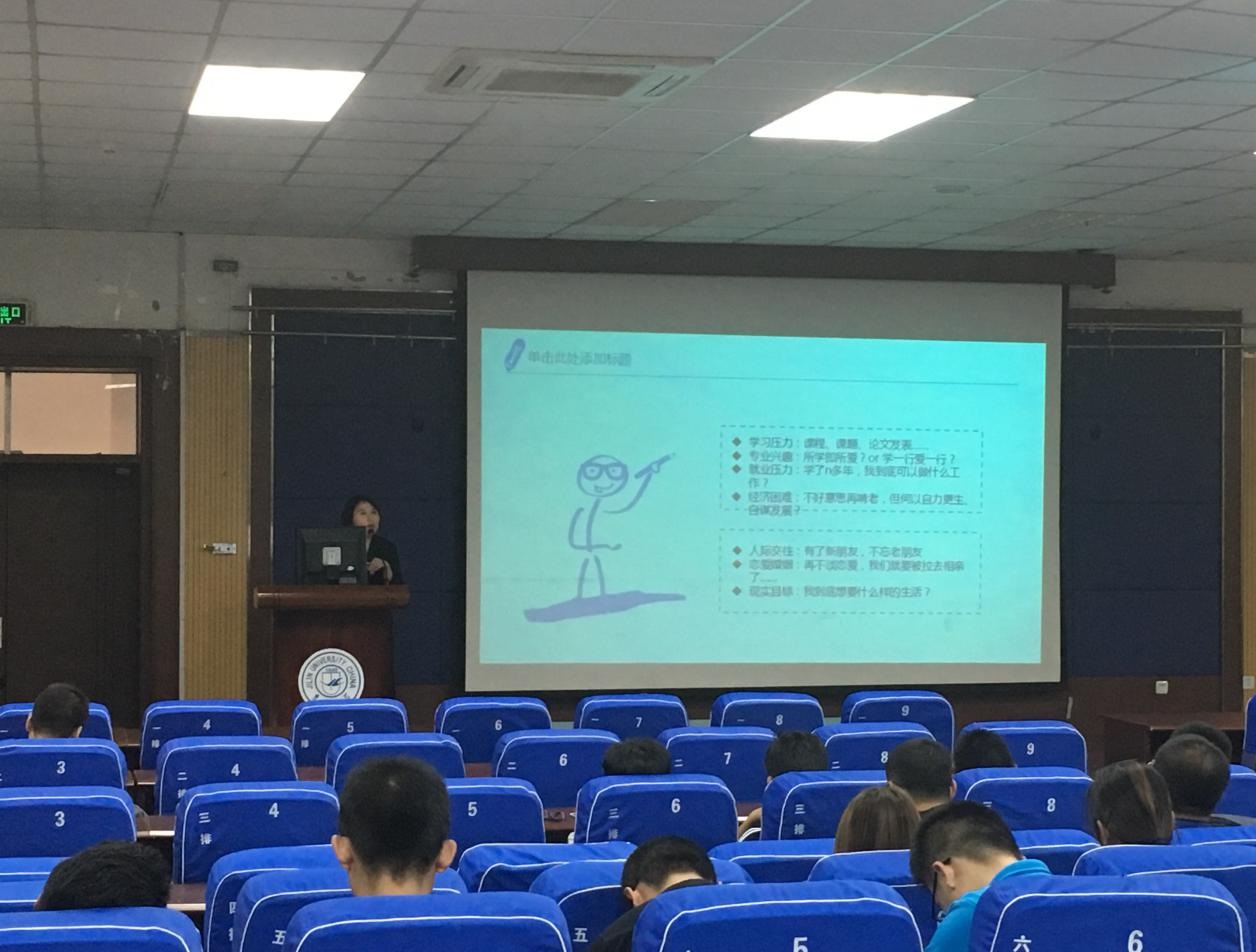 学生心理健康指导中心危机管理科科长白仲琪老师。白老师讲述了心理健康的概念以及标准,并针对当代大学生的心理特点以及易出现的心理问题,结合当下热点问题,用幽默诙谐的语言,带领同学们进行了一次探索自己的内心世界的旅行。讲座期间,白老师引经据典、妙语连珠,同学们的认真聆听,一次次的热烈掌声,将讲座气氛逐渐推向了高潮。讲座结束后,白老师针对部分同学提出的有关心理自我调节的问题进行了答复,并晓之以理,动之以情,让提问的同学不仅收获了解决问题的有效途径,自己的内心也感到释然。