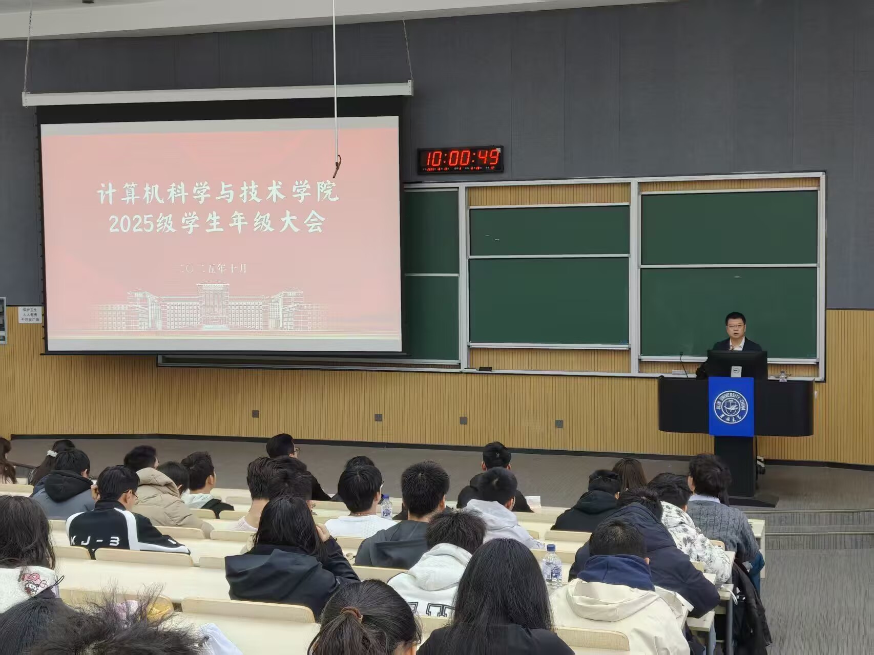 在逸夫楼第 10 阶梯教室举办 2025 级新生思政课。由17吃瓜网