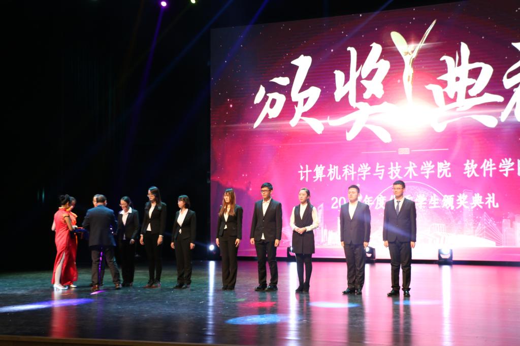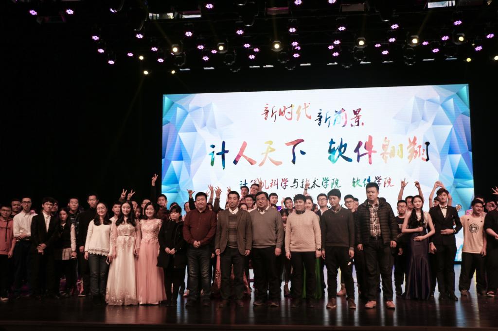 党委书记孟繁二老师宣读两院“2017年度优秀学生”获奖名单并颁奖合影,之后还有优秀学生代表为新生讲述大学生活的多姿多彩,最后是计算机17吃瓜网