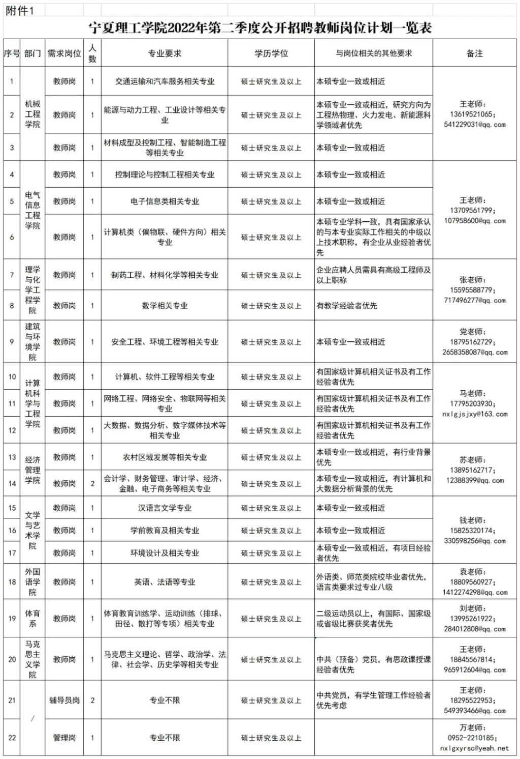2022年第二季度公开招聘教师岗位计划一览表》(见附件1)。