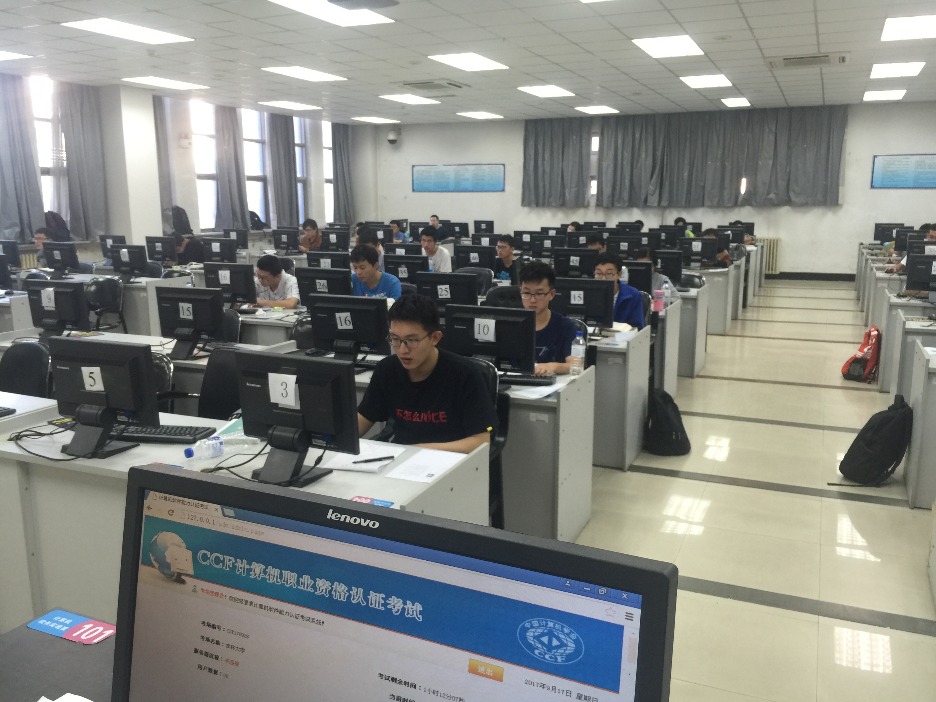 本次认证考试报名人数230人,实际参加人数192人,12:40,开始组织学生签到;考前15分钟,宣读《考场纪律及注意事项》 ;考试密码发送后,及时开始考试。考试过程中,监考教师和技术支持人员尽职尽责,耐心解答学生遇到的问题。17:30,考试顺利结束,学生退场。17:40,CCF确认考试数据提交完毕。整个认证考试平稳有序,有条不紊。