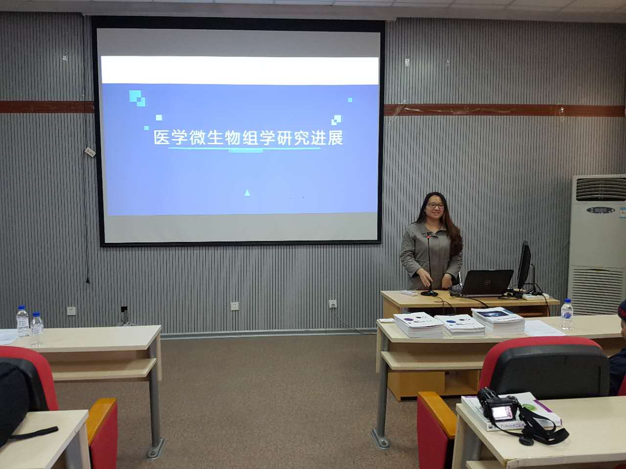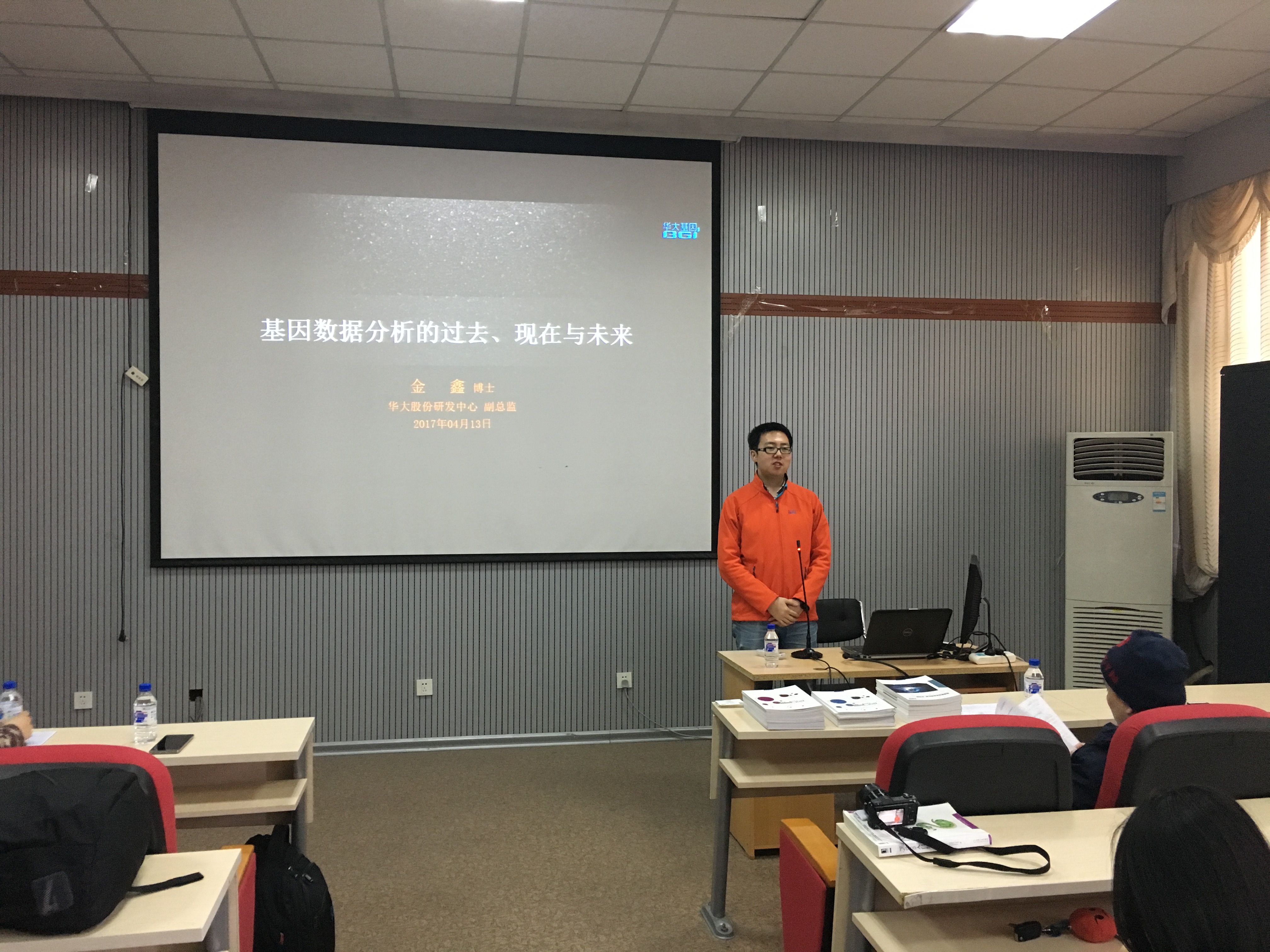 2017年4月14日下午1:30,在计算机楼A521,来自深圳华大基因股份有限公司的金鑫研究员和王爽女士分别作了题为《基因数据分析的过去、现在和未来》和《医学微生物组学研究进展》的学术报告。