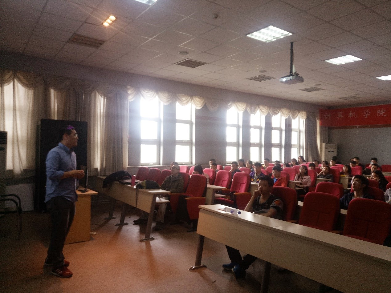 本次讲座从人脸识别的基本概念入手,介绍了人脸检测模块,特征点自动标注模块,及人脸识别模块。分析了三大模块的研究热点的变迁,并且详细分析了三大模块的当前研究热点及难点。最后介绍了人脸识别技术在国内外的应用情况。报告最后,胡国圣博士与现场师生进行了探讨交流,就人脸识别的应用等问题进行了充分的讨论,为现场师生进行相关方向的研究提供了较好和较新的思路。胡国圣博士的讲座不仅脉络清晰,干货满满,更是风趣幽默,深入浅出,整个讲座在热烈的掌声当中结束,参加此次报告的同学们均表示收获颇丰。