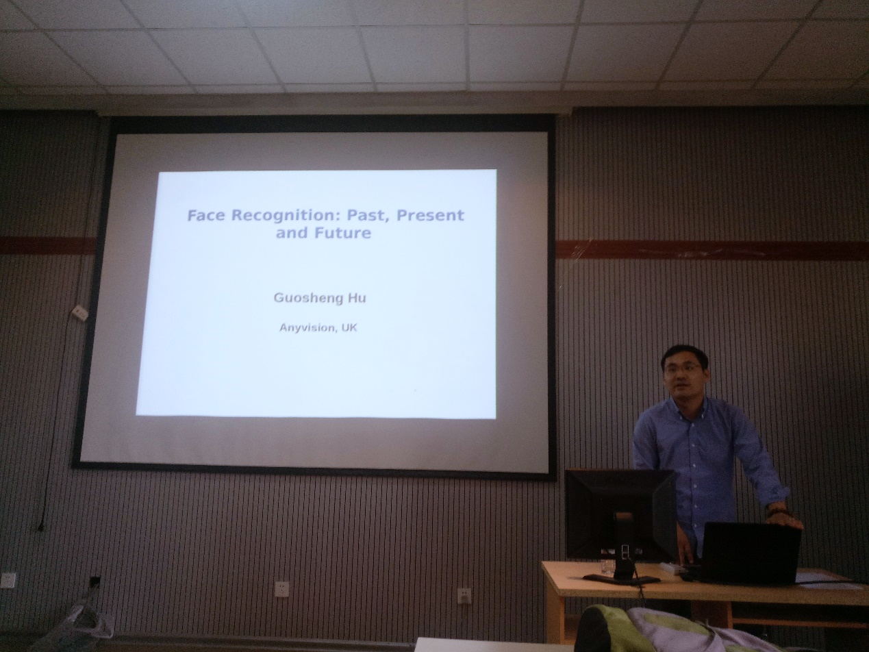 做了题目为“人脸识别的过去,现在和将来”的学术报告。胡国圣博士毕业于英国萨里大学,师从英国皇家工程院院士Josef Kittler教授,从事人脸识别相关研究。读博期间,深入研究3D辅助2D的人脸识别方法,相关成果申请美国专利一项,发表机器视觉顶级会议论文ECCV一篇,以及SCI论文和其他国际会议论文多篇。曾在美国迪士尼图形图像研究院(匹兹堡)实习,主导产品‘利用三维人脸信息进行迪士尼角色选取’的研发,研发的产品在美国洛杉矶迪士尼乐园和佛罗里达奥兰多迪士尼乐园落地使用。目前在英国Anyvision公司,领导公司的智能安防研发部门(人脸识别,行人再辨识)。负责高新技术的研发,以及科研在产品中的落地问题。相关研究成果已经应用在多个机场恐怖分子自动监控系统之中。