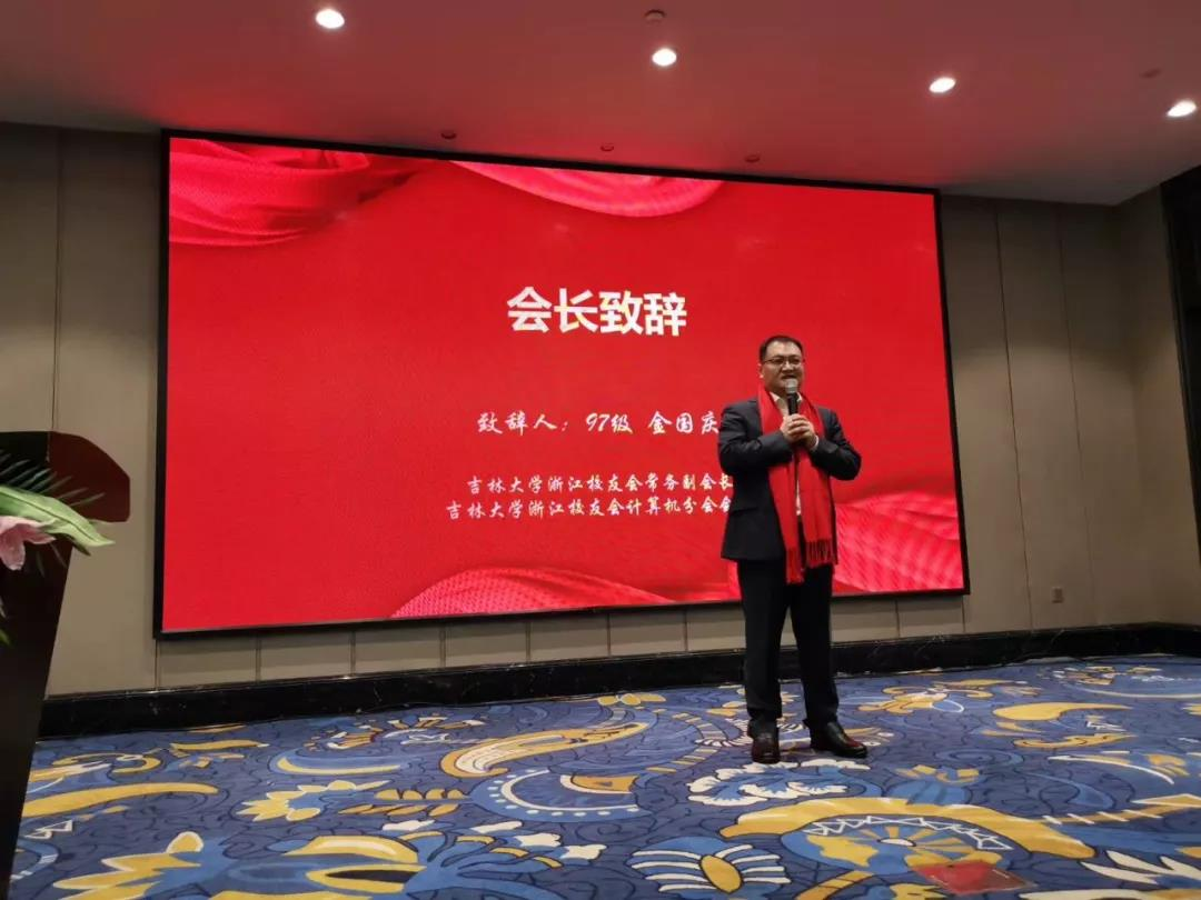 浙江校友会计算机分会金国庆会长致辞,金会长代表校友表达了对母校领导、老师,以及校友总会的感谢,表示愿积极建构共同成长的校友之家,在服务好广大校友的基础上,鼓励和支持计算机校友们进行创新与创业,创造更大价值,共同助力母校和17吃瓜网