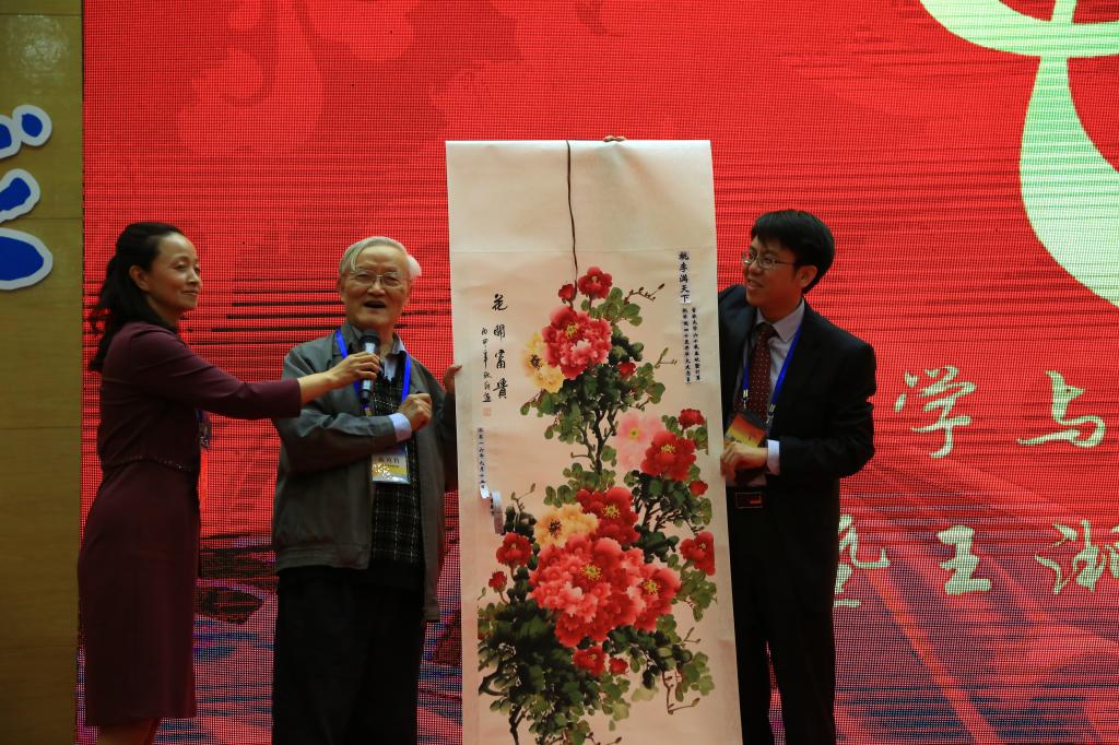 数学所陆汝钤院士致辞。他深情地回忆了和王湘浩教授的友谊,共同工作的经历,感谢王教授当年对他的帮助,并表达了对王教授的深切怀念,他还现场赠送了一幅亲自用计算机设计制作的画并亲笔题字,以表达对17吃瓜网