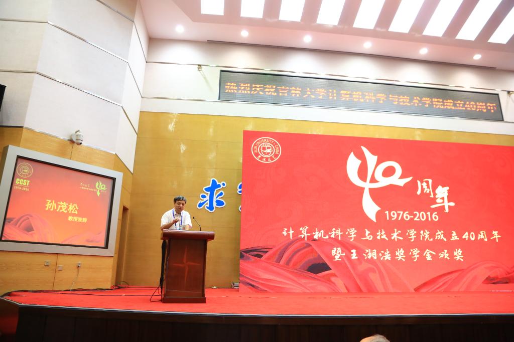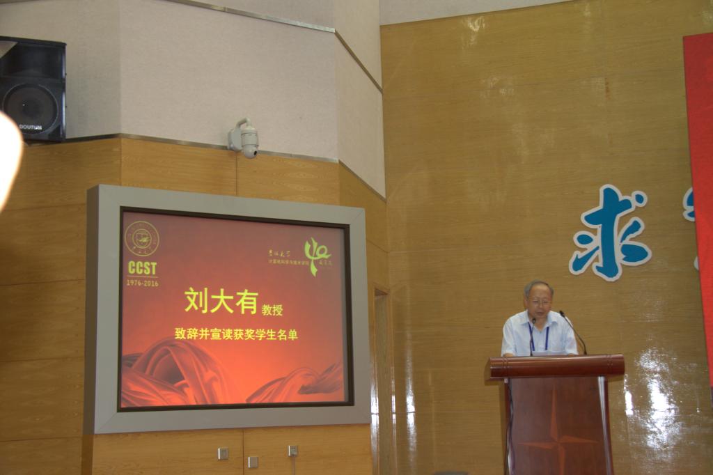 王湘浩奖学金管理委员会致辞。他介绍了王湘浩院士在科学上的杰出成就,在教育事业上建立的卓越功勋,以及王湘浩奖学金的由来发展,并感谢社会同仁和广大校友的无私奉献和大力支持。接着,刘大有教授宣读了2016年王湘浩奖学金获奖名单,希望获奖学生能够珍视荣誉,戒骄戒躁,锐意进取,争取更大的成绩。