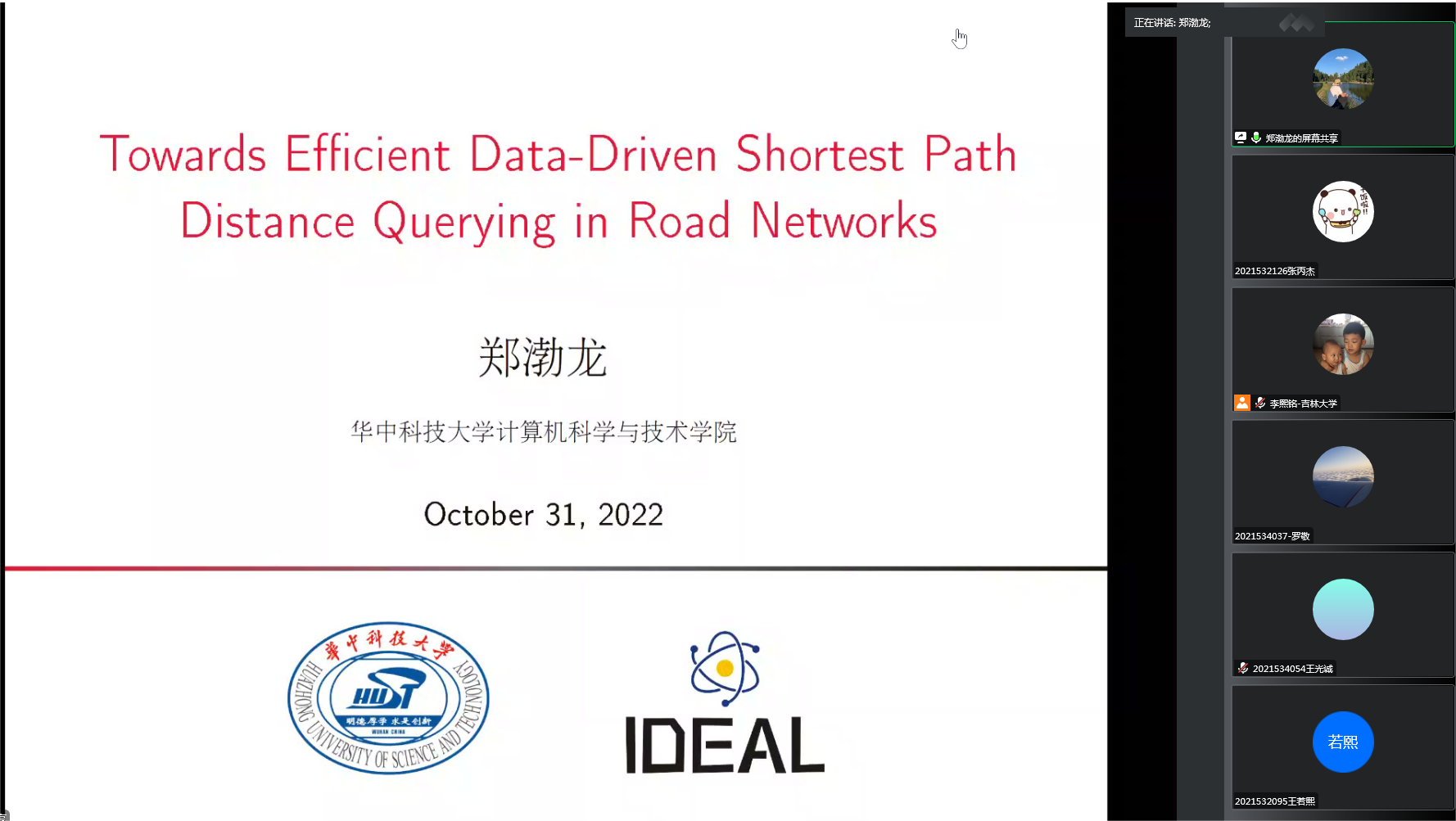 邀请,利用腾讯会议作了题为“Towards Efficient Data-Driven Shortest Path Distance Querying in Road Networks”的学术报告。17吃瓜网