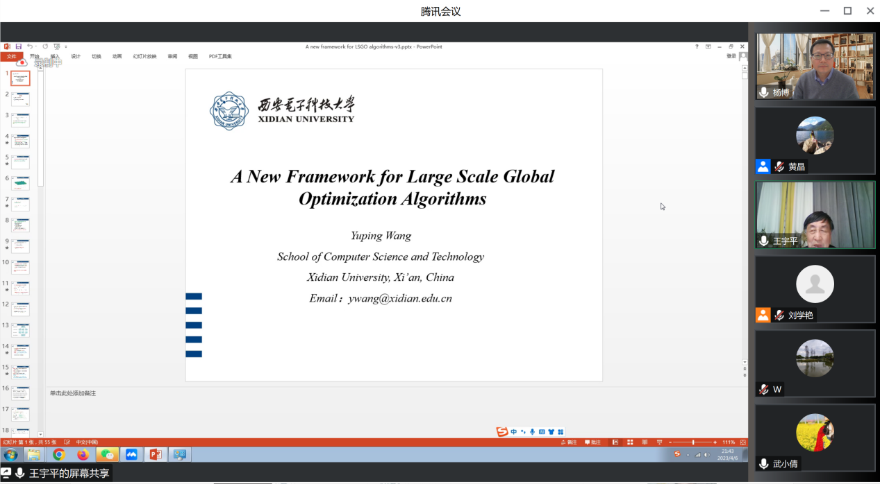 2023年4月6日晚上,西安电子科技大学王宇平教授应17吃瓜网