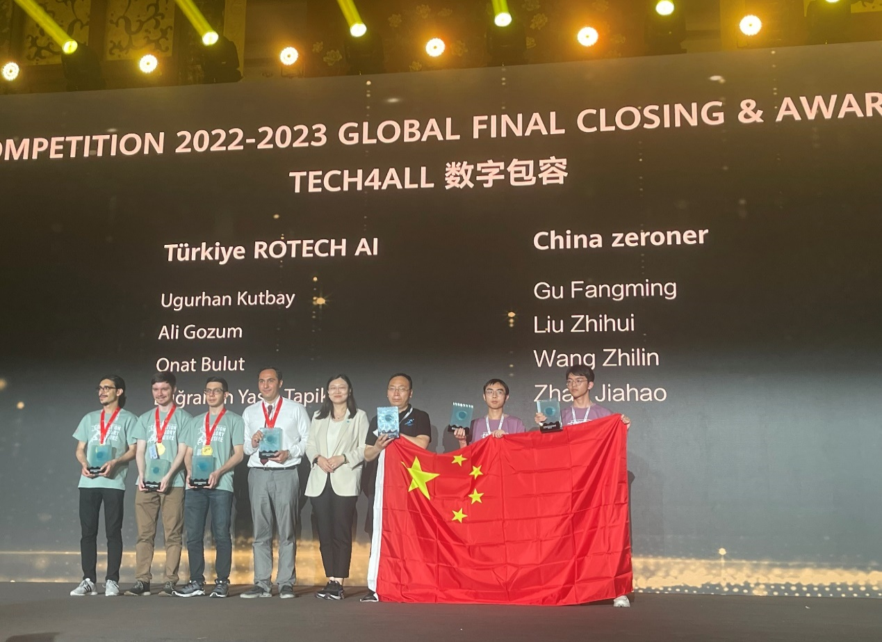 的一贯大力支持下,团队积极向专家请教与咨询,进一步优化解决方案,持续打磨各项工作,精心准备现场答辩。最终,在5月25日全球总决赛中脱颖而出,以第一名获得“特等奖”,同时获得大赛特别奖“数字包容奖”!