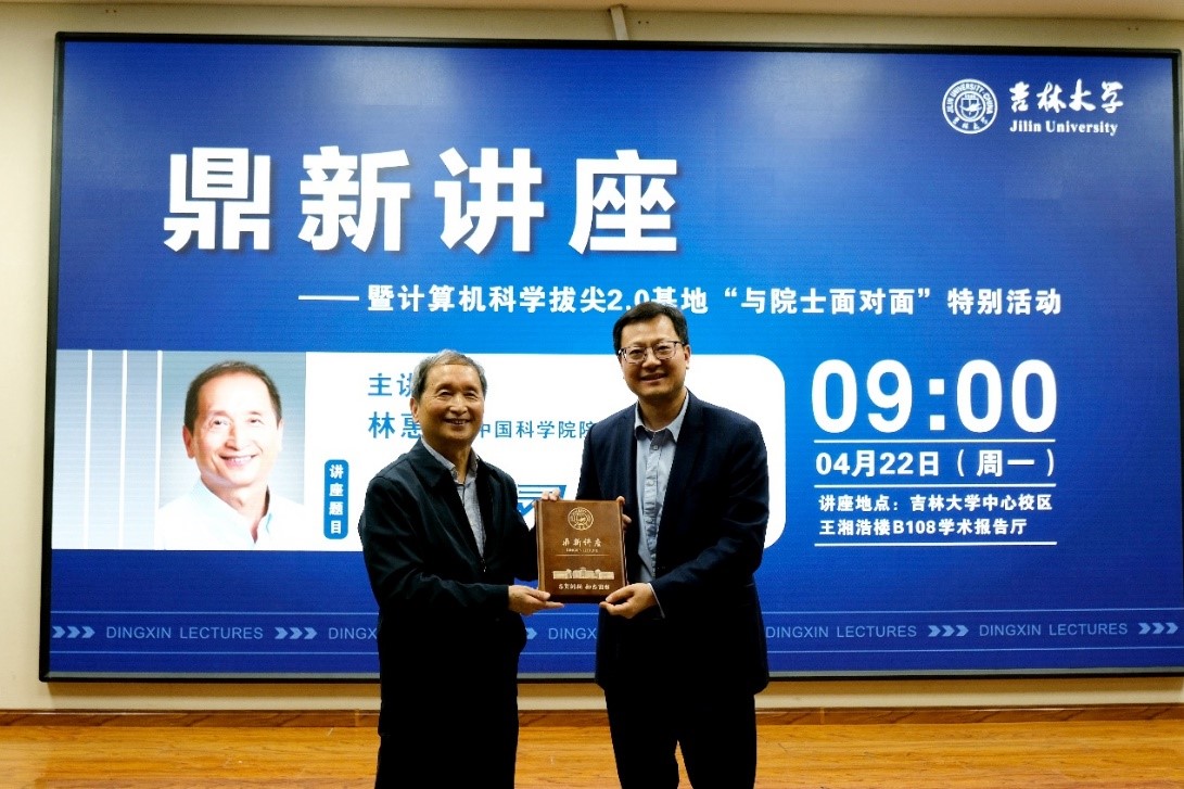 院长、符号计算与知识工程教育部重点实验室主任杨博教授主持讲座并为林惠民院士颁发了“鼎新讲座纪念牌”。