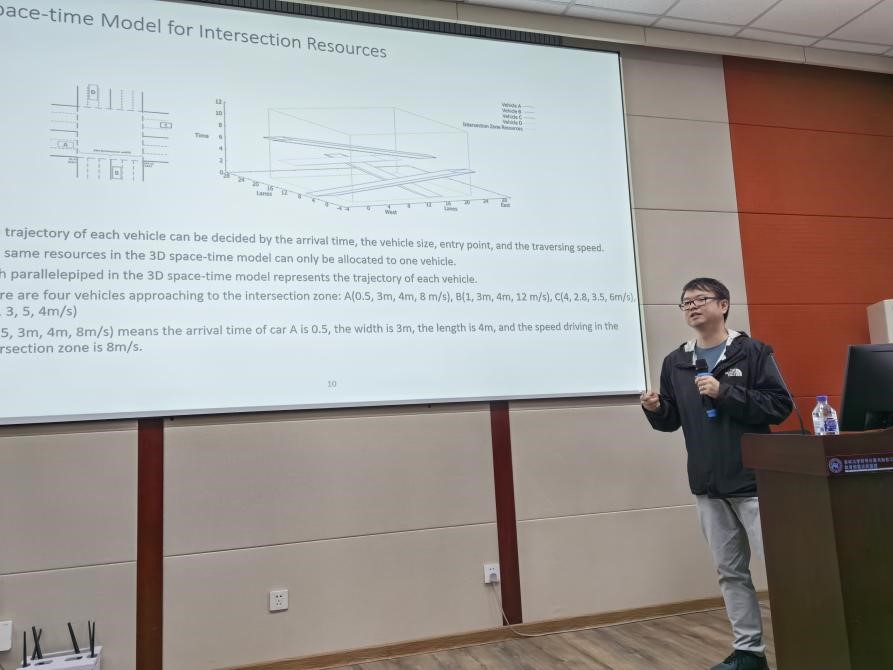 师生带来了题为“无信号灯交叉路口的动态时空资源分配管理”的学术报告。