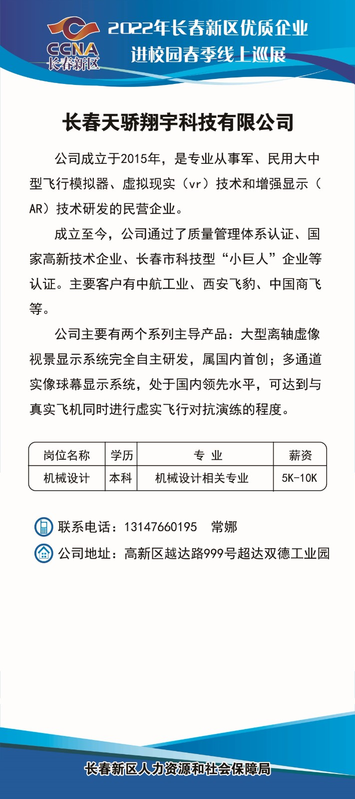【春季云上招聘月】2022年长春新区优质企业进校园春季线上巡展-第1期